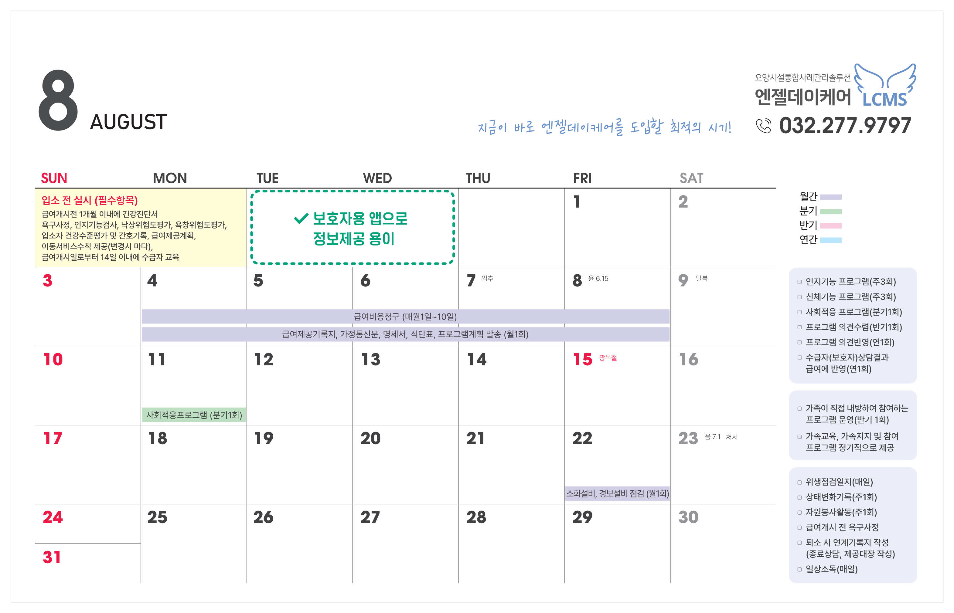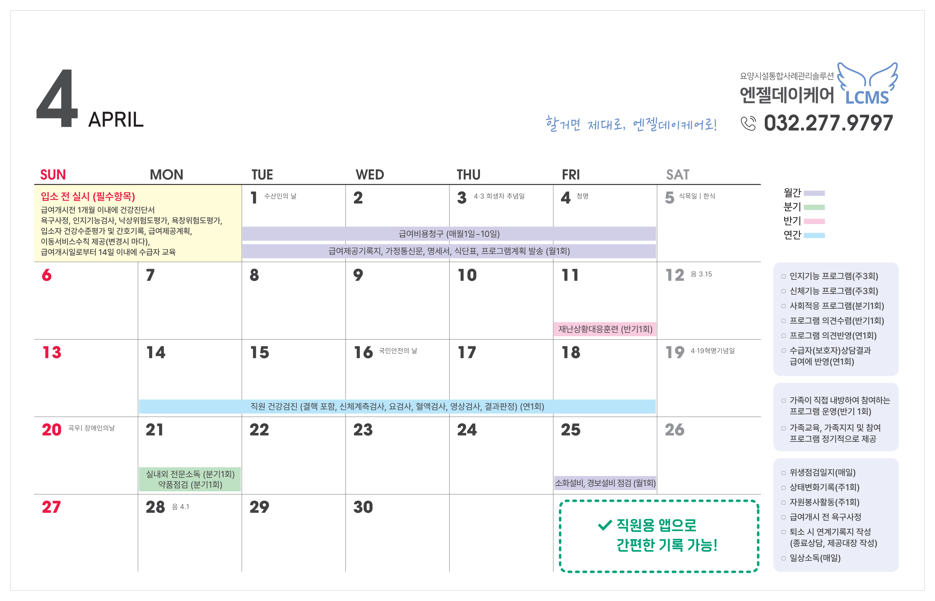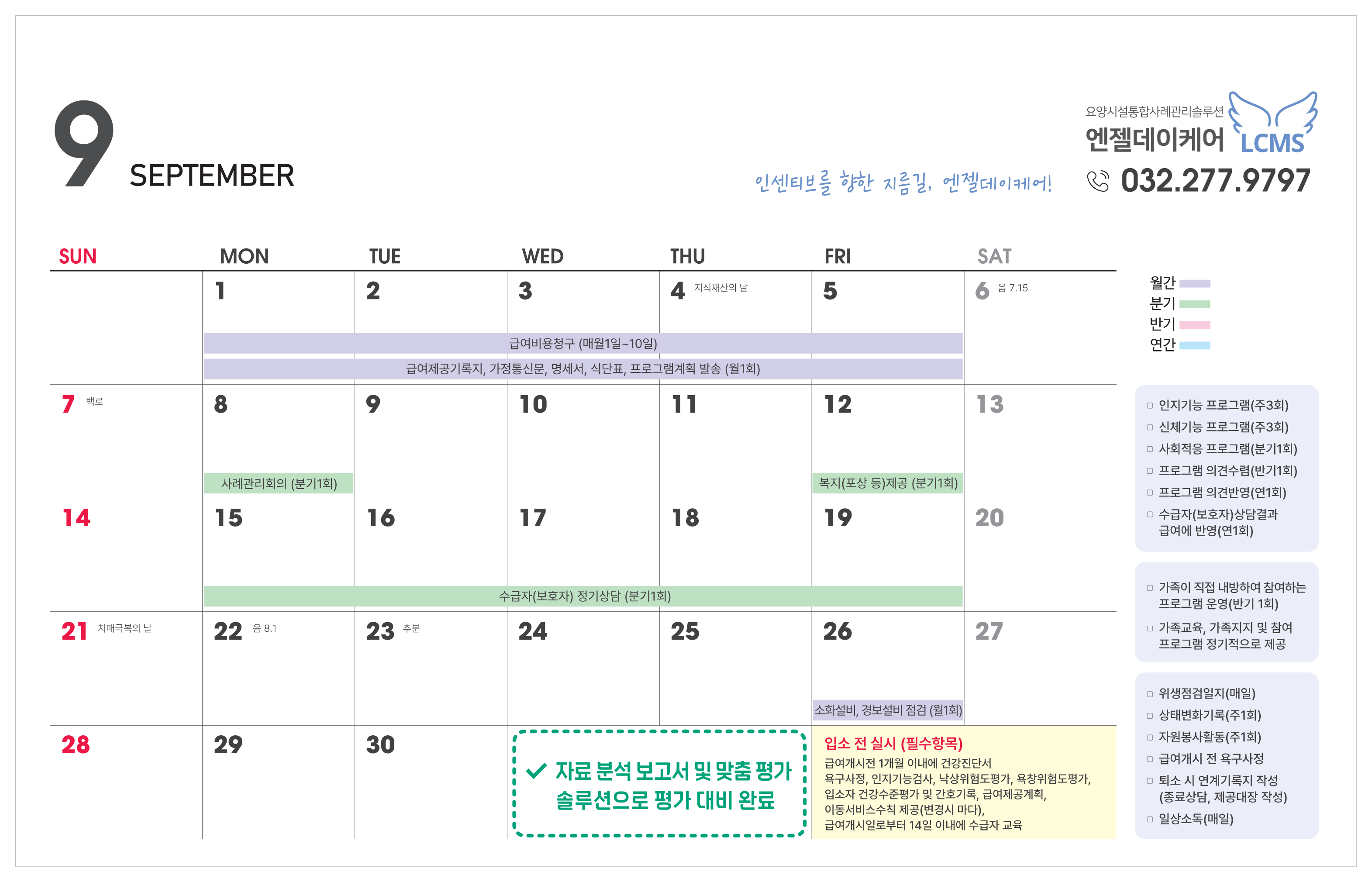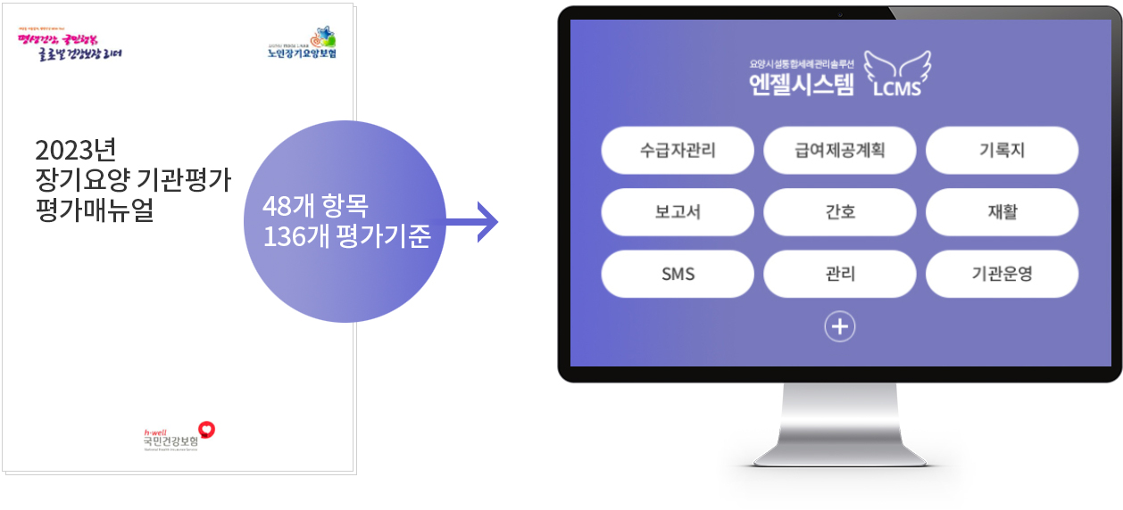 엔젤시스템에서는 장기요양 기관평가 항목에 필요한 기능을 제공하여